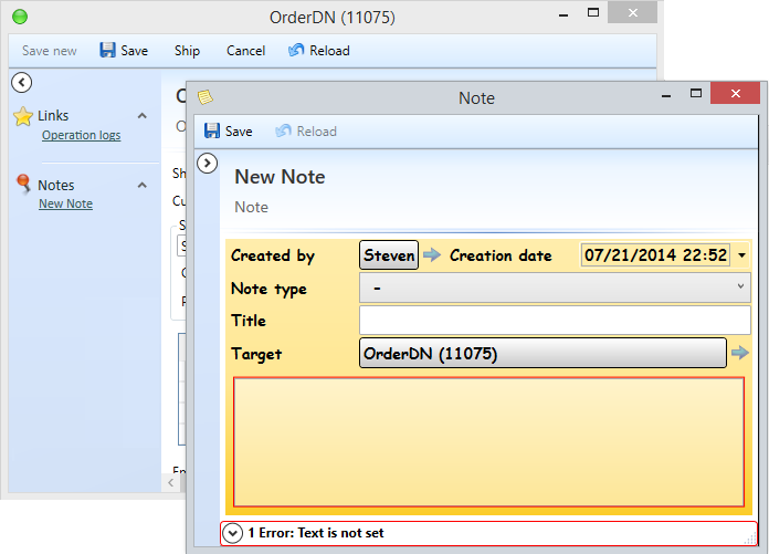 A simple API let you create notes in your business logic on any operation, process or scheduled task. This is a great way for your application to communicate unstructured information to the users.