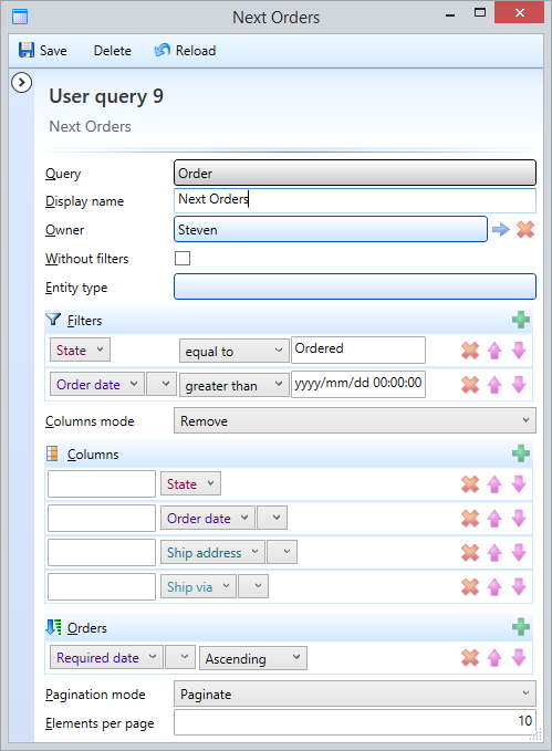 One interesting feature is associating a UserQuery with a type, becoming a quick link from any instance of this type that is accessible as a widget or a context menu in the search dialog. With this feature is easy to create reports like 'Last 5 orders' accessible from a customer.